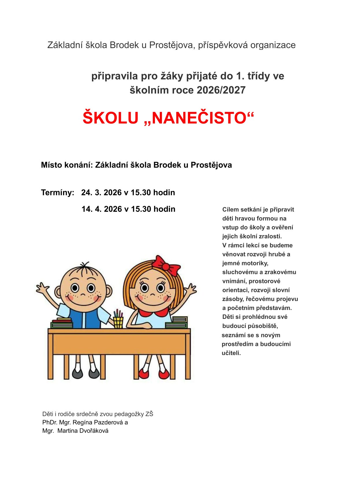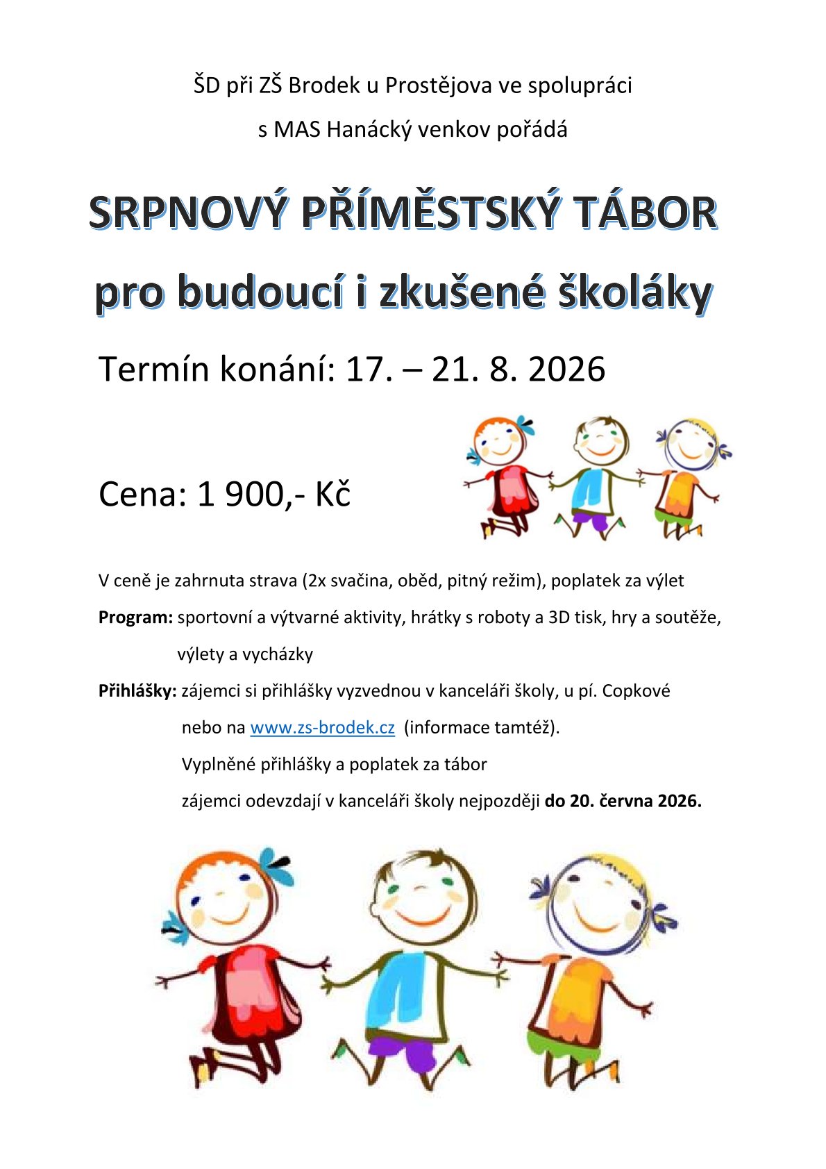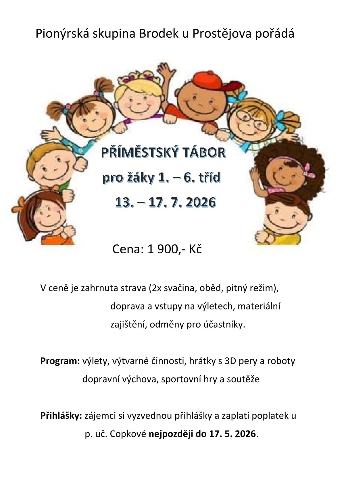 Příměstský tábor pro děti od 1. do 6. třídy se koná od 13. do 17. 7. 2026